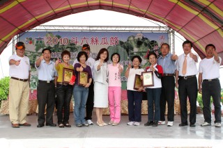 【記者曾雅淳/雲林報導】2010斗六絲瓜節活動今天(第2天)在斗六市三光里絲瓜專業區盛大舉辦,縣長蘇治芬親臨會場向昨天參加絲瓜料理競賽得獎者表達祝賀之意。